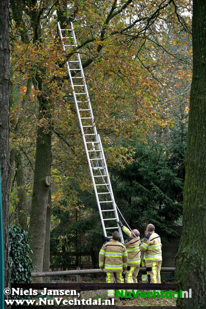 DALFSEN #69 – Op donderdag 20 november kreeg de brandweer van Dalfsen rond 12:55 een melding “Dier op hoogte” aan de Hammerweg, tussen Dalfsen en Vilsteren. Bij een manege zat voor de derde dag achtereen een poes in een boom en deze kon er niet zelfstandig uit komen. Dit was duidelijk te merken aan het harde miauwen.